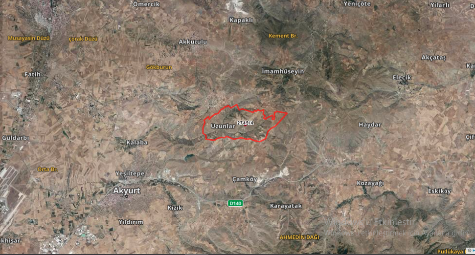 Akyurt İlçesi Uzunlar Mahallesinde Kıble Arkaç Mevkiinde 16.250 m² Tek Tapulu Satılık Tarla